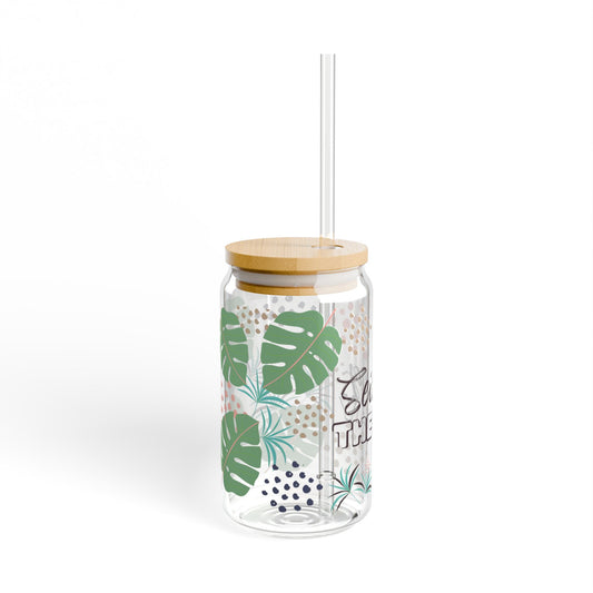 Sip on Hope, Breathe in Healing – 16oz Glass Sipper with Bamboo Lid & Straw